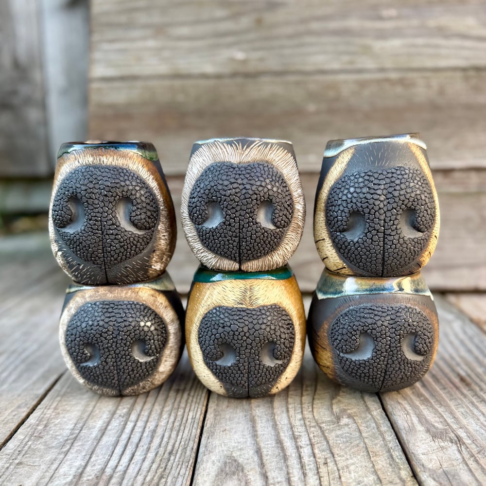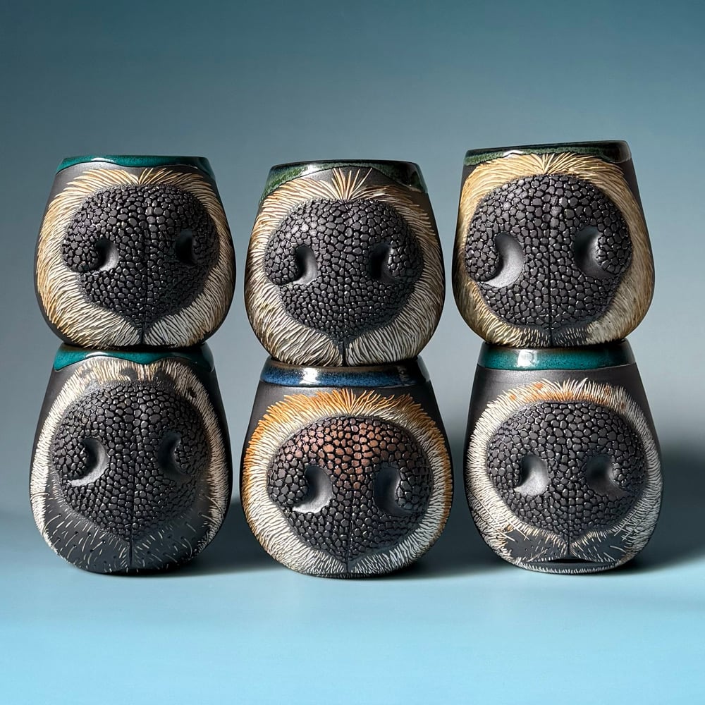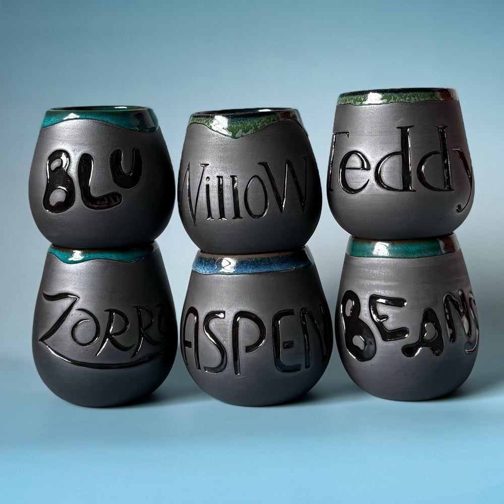 Immortalize your best friend’s Snoot in clay! Each snoot cup is wheel thrown and then altered, individually sculpted and carved to capture the unique charm of your dog’s nose. Your dog's name is then hand-carved on the opposite side. No two are ever alike: each one is an ode your pup and the love they bring into your life.